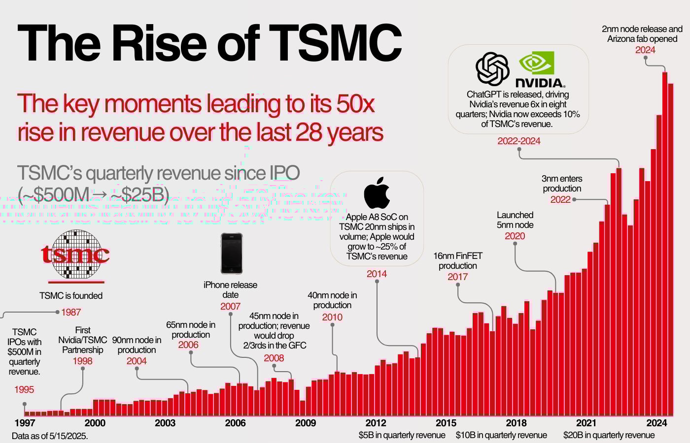 ✨ Many analysts pointed out that TSMC holds a growing lead over competitors like Samsung and Intel in advanced chip manufacturing, and that the company’s ability to consistently deliver better performance on cutting-edge offerings has made it the “indispensable” partner for chip designers worldwide.
