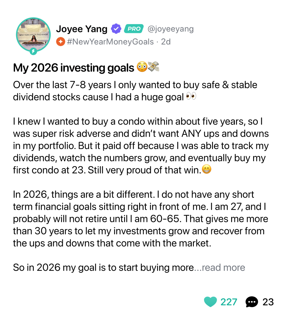 🎆 P.S. Make sure to join the #NewYearMoneyGoals contest on Blossom sponsored by moomoo! Just make a post like Joyee’s below, and you’ll be entered to win 1 of 10 Blossom x moomoo prize packs 🥳