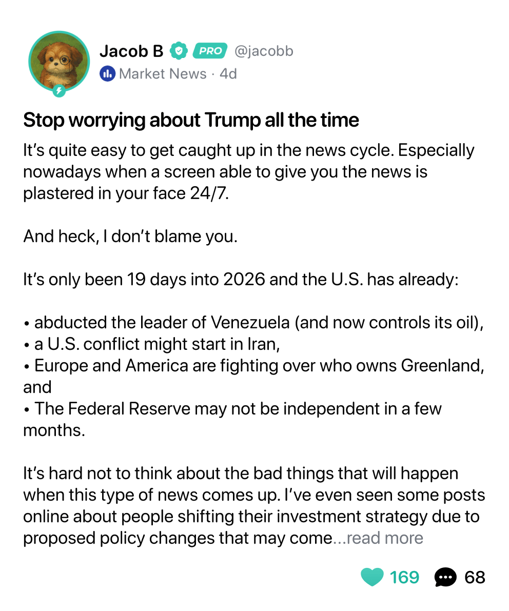 🧘♂️ Last week, I talked about how investors stayed calm amid the political chaos involving the Federal Reserve's independence and Trump’s threats to slap tariffs on countries that didn’t support the US ownership of Greenland…