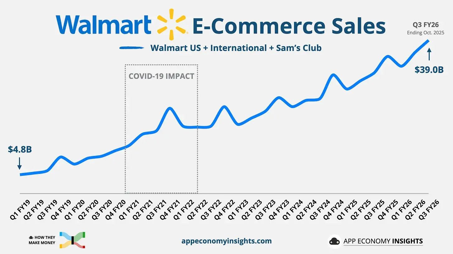 💡 If Walmart can keeps this growth up, it’s on path to turn a once low-margin retail business into a high margin tech-retail business like Amazon.